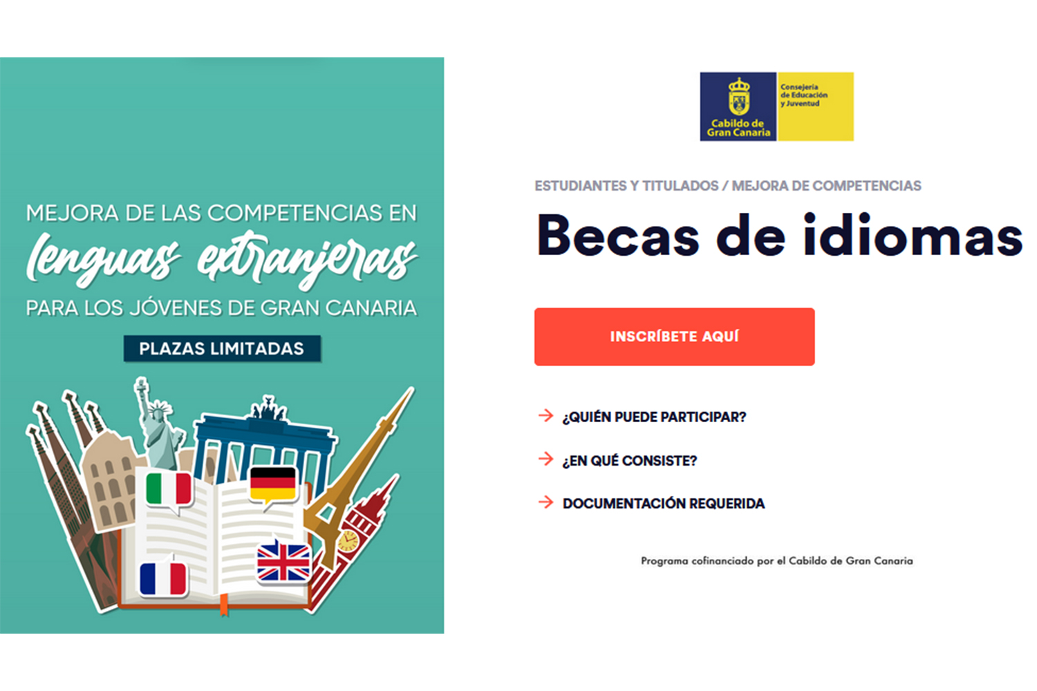 Se informa que está abierta la matrícula para solicitar las becas de cursos de idiomas cofinanciadas entre el Cabildo de Gran Canaria y la FULP.