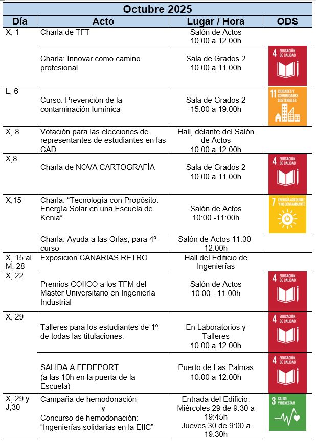 Les recordamos que toda esta información también está disponible en las redes sociales de la Escuela: Facebook (eiic.ulpgc.es) e Instagram (@eiic.ulpgc).