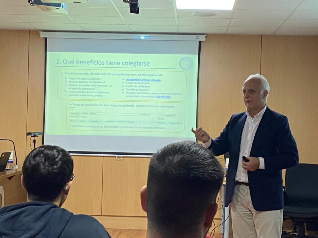 Hoy miércoles se celebró en la Sala de Grados 2 de la Escuela la conferencia titulada “Presente y futuro de la Ingeniería Naval”, impartida por representantes del Colegio Oficial de Ingenieros Navales y Oceánicos: