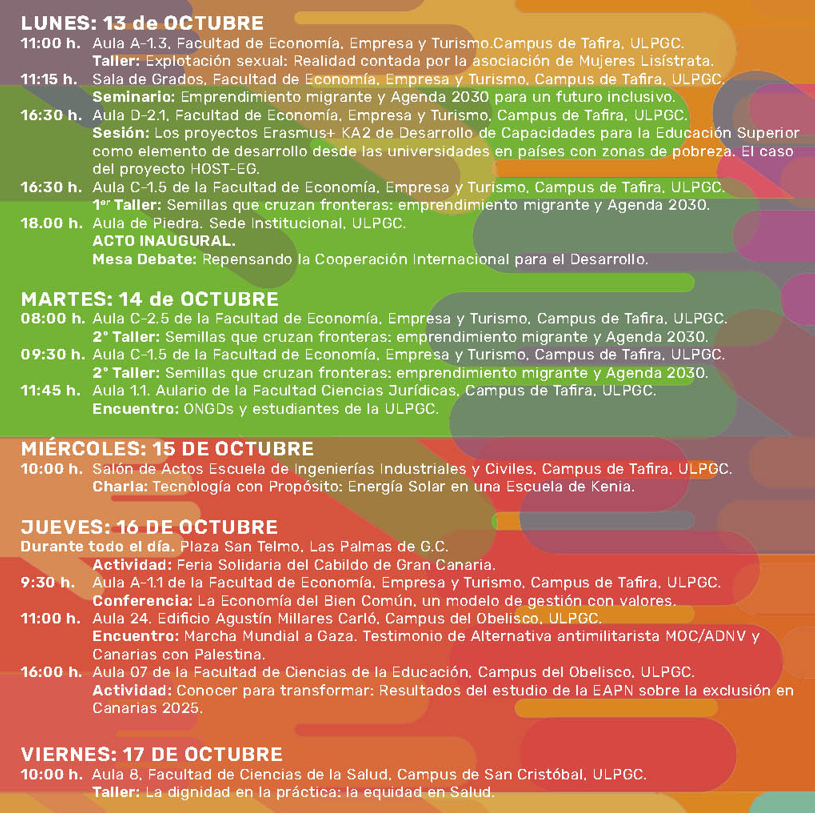 Esta actividad forma parte de la XIX Semana de Erradicación de la Pobreza de la ULPGC y está coordinada por el Grupo de Cooperación UNIDOS, integrado por Susan Cranfield, Ana María Blanco Marigorta y Noemí Melián Martel.
