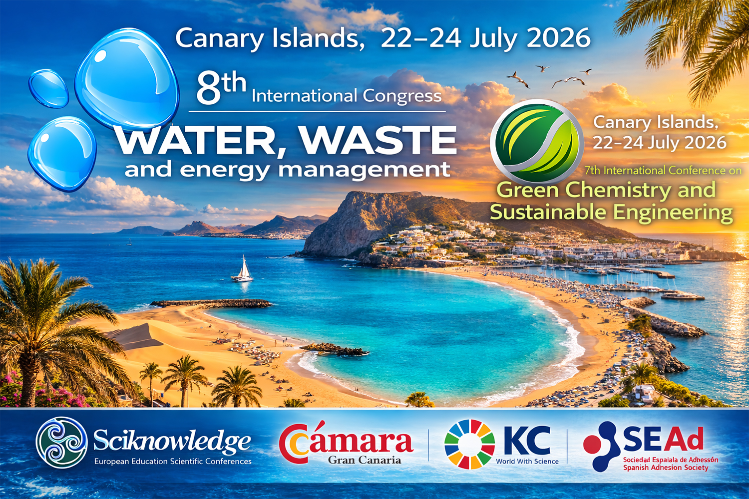 Los congresos internacionales WWEM-26 y GreenCHEM-26 se celebrarán en Gran Canaria del 22 al 24 de julio de 2026, consolidando a la isla como punto de encuentro para el debate científico en torno al agua, los residuos, la energía y la química sostenible.