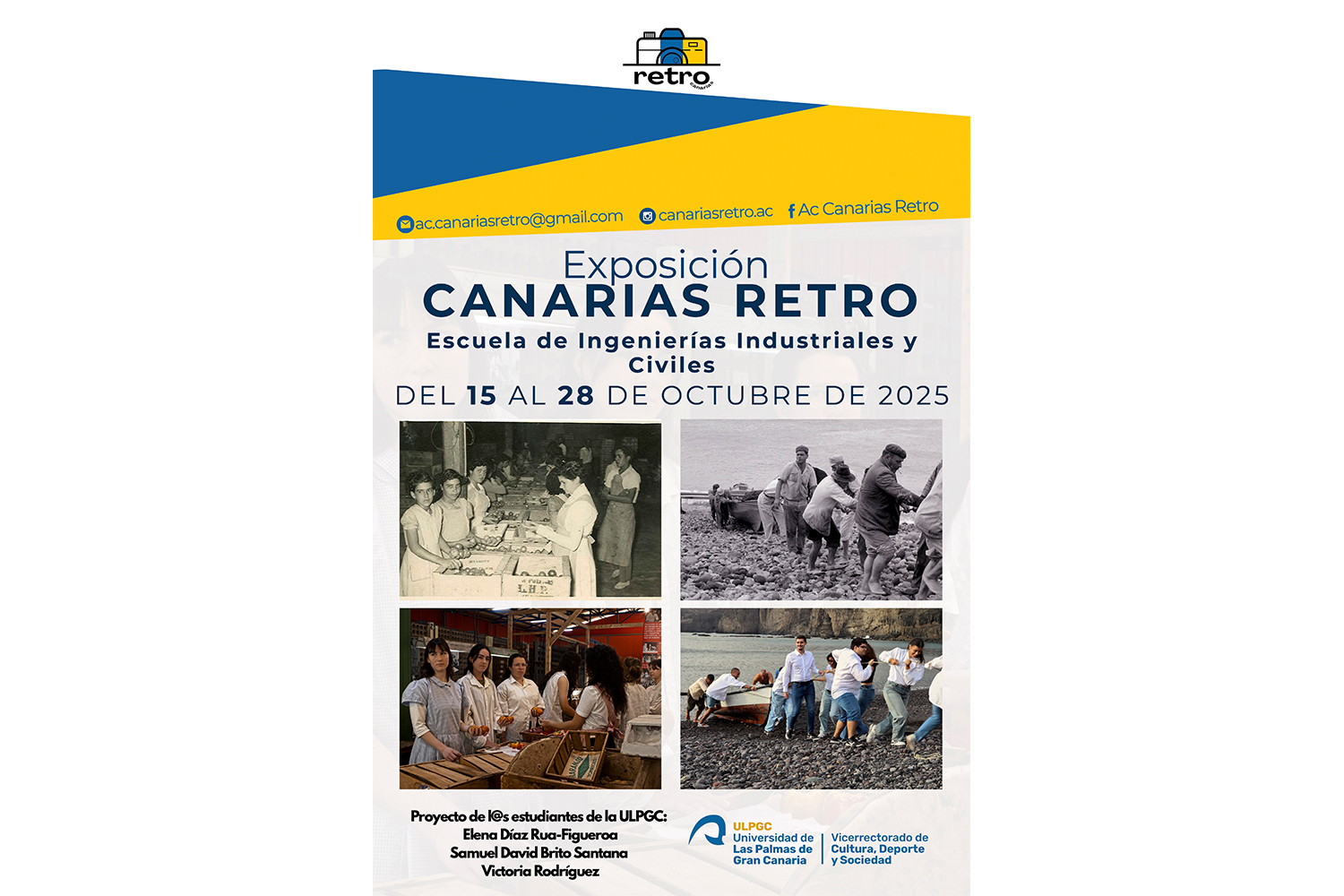 Del 15 al 28 de octubre, la Escuela de Ingenierías Industriales y Civiles acoge la exposición fotográfica “Canarias Retro”, un proyecto creado por tres jóvenes estudiantes de la Universidad de Las Palmas de Gran Canaria (ULPGC) que invitan a redescubrir el pasado de las Islas Canarias de una forma única y emocionante.