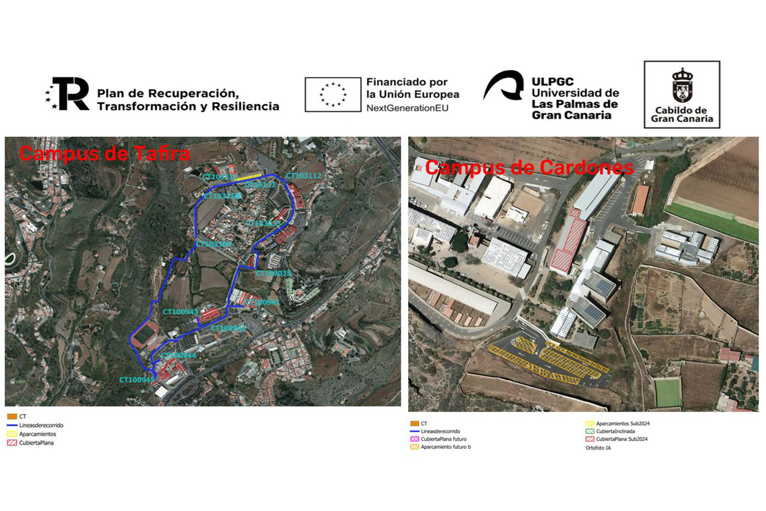 Estas instalaciones permitirán generar electricidad renovable directamente en los edificios universitarios mediante sistemas fotovoltaicos de autoconsumo, reduciendo la dependencia energética de la red convencional y disminuyendo de forma notable la huella de carbono institucional. Con esta actuación, la ULPGC refuerza su estrategia de transición energética, incrementando significativamente la producción de energía limpia en sus campus y contribuyendo a reducir tanto el gasto energético anual como las emisiones de CO₂ asociadas al consumo eléctrico.