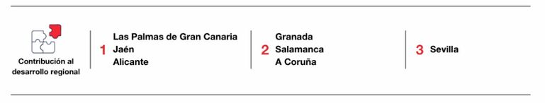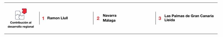En Ingeniería Industrial/Producción, la ULPGC se sitúa en el Top 3 nacional en Contribución al desarrollo regional, junto con las universidades Ramon Llull, Navarra, Málaga y Lleida. Esta dimensión valora aspectos como las prácticas con empresas locales y la colaboración en TFT con empresas.