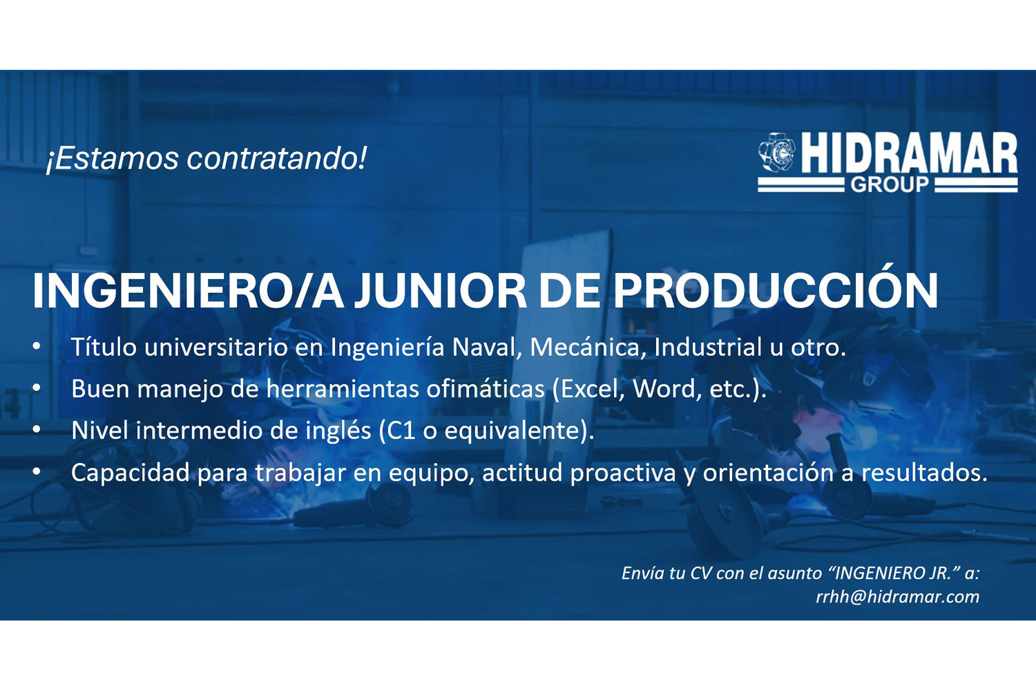 Oferta de empleo de la empresa HIDRAMAR GROUP para grado en Ingeniería en Tecnología Naval, Grado en Ingeniería Mecánica, Grado en Ingeniería Eléctrica, Grado en Ingeniería Electrónica Industrial y Automática, Grado en Ingeniería Química Industrial u otros