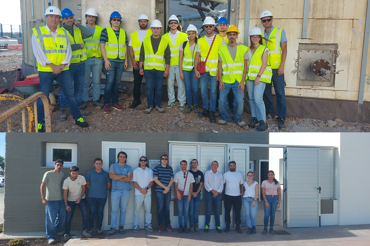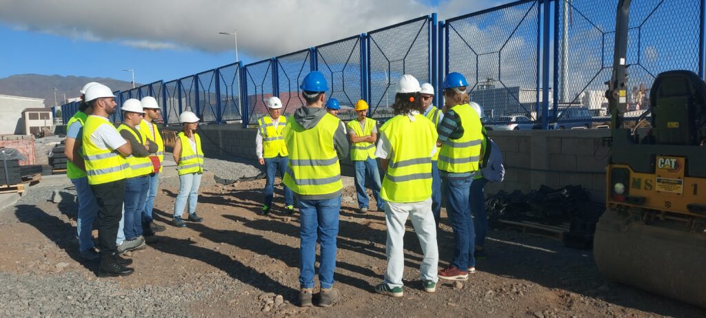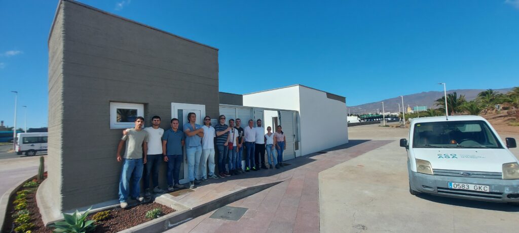 En la segunda parte de la jornada, el alumnado visitó la vivienda demostrativa de construcción 3D desarrollada por EVOCONS para la Entidad de Conservación de la Zona Industrial de Arinaga. En este caso el grupo fue recibido por Odón Samuel Caballero Rodríguez, Ingeniero de ECOAGA, quien explicó el proceso de impresión 3D con hormigón, las características estructurales del prototipo y las ventajas que aporta este sistema en términos de eficiencia, rapidez y sostenibilidad.