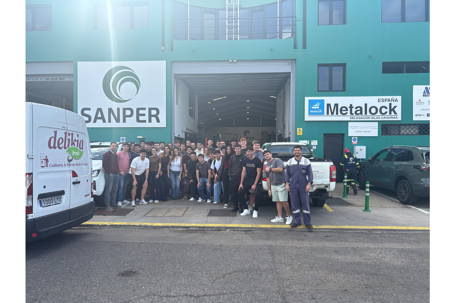 Reconocida en Canarias por su alta especialización en los sectores naval, industrial y aeronáutico, Talleres Sanper abrió sus instalaciones para que nuestros estudiantes pudieran conocer de primera mano el día a día de una empresa referente. Con más de cuatro décadas de experiencia y más de 5.000 m² dedicados a la fabricación y el mantenimiento, la compañía se ha consolidado como un espacio donde la innovación y la excelencia técnica van de la mano.