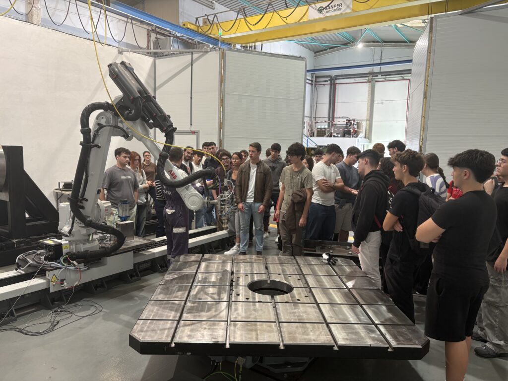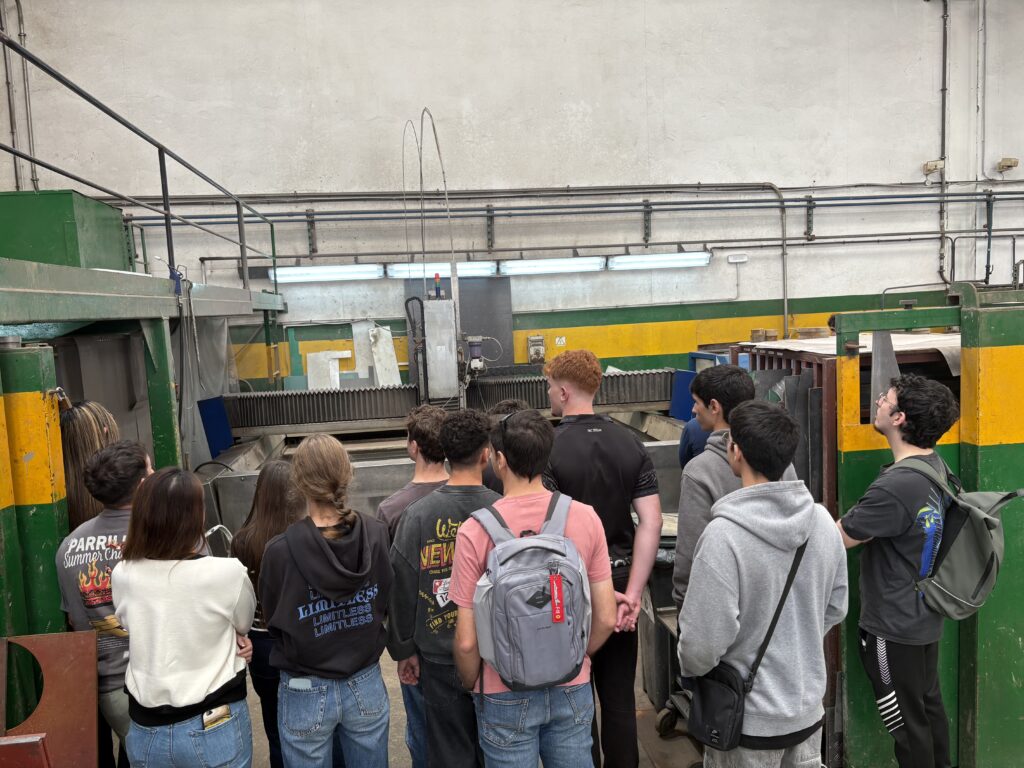 Durante el recorrido, los estudiantes pudieron adentrarse en distintos procesos de manufactura: fresado y torneado CNC, mandrinado de piezas de gran tamaño, corte por chorro de agua, operaciones de cizallado, plegado y curvado de chapa, además de diversos tipos de soldadura, tanto convencional como especializada. Ver todos estos procedimientos reunidos en un mismo entorno les permitió comprender la complejidad y la coordinación que exige un entorno industrial avanzado.